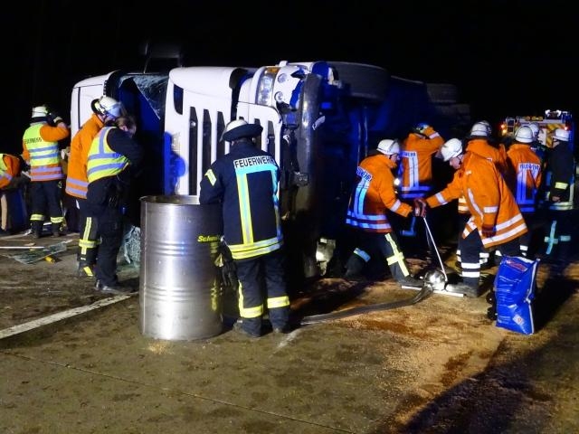 Nach dem Zusammenstoß mit der Leitplanke ist der LKW quer über die Autobahn geschleudert worden und in die Mittelleitplanke gekracht. Auf den beiden linken Fahrspuren blieb er auf der Seite liegen. Der 57 jährige LKW Fahrer konnte noch vor dem Eintreffen der Einsatzkräfte von Ersthelfern, durch die Frontscheibe, aus seinem Fahrzeug befreit werden.Ein Schutzengel muss an Bord des Fahrzeugs gewesen sein, denn der Fahrer hat den schweren Unfall unverletzt überstanden.